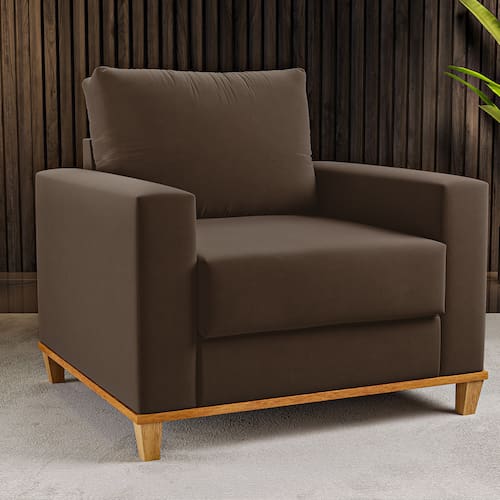 - Pode Ser Montado Invertido?: Não - Pés com regulagem de altura?: Não - Possui Pés?: Sim - Possui Sapatas?: Não - Categoria: Poltrona - Material da Estrutura: Eucalipto - Espessura da Estrutura: 30 mm - Enchimento do Assento: D-23 - Enchimento do Encosto: Fibra Siliconada - Tipo de Tecido: Veludo - Escala de Brilho: Semi-Brilho - Como os Móveis Chegarão em Minha Casa?: Desmontado em caixas, acompanhado de todas as peças, ferragens e manuais para montagem. - Grau de Dificuldade de Montagem: Baixo - Sistema de Montagem: Parafusos, cavilhas, cola e minifix. - Indicação de Uso: Sala de Estar, Escritório, Jardim, Decoração de Ambientes - Recomendação de Manutenção: Utilizar pano levemente umedecido, seguido de pano seco. Não utilizar quaisquer produtos abrasivos. - Garantia (dias): 90 Dias - Quantidade de Pés: 4 - Tipo de Poltrona?: Poltrona - Possui Gavetas?: Não - Possui Portas?: Não - Possui Espelho?: Não - Possui Prateleiras?: Não - Possui Puxadores?: Não - Possui Tampo?: Não - Possui Rodízios?: Não - Revestimento/Acabamento: Tecido - Possui Borda de PVC nas Bordas?: Não - Necessita de Montagem: Sim - Observação: Objetos decorativos que aparecem nas imagens, não acompanham o produto. A capacidade de carga considera que o peso está distribuído igualmente pela peça. As cores das imagens podem variar de acordo com as configurações do seu monitor e/ou da iluminação do ambiente onde o produto está inserido. As imagens indicam uma sugestão