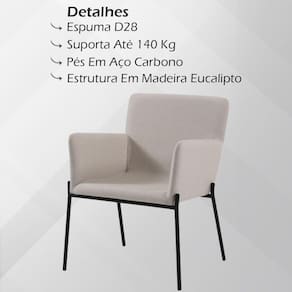 Poltrona Decorativa Pes Em Aço Preto 7051, uma peça versátil, ideal para ser utilizada em salas de estar, ambientes corporativos e hall de entrada. Estrutura em Madeira Eucalipto com Pés em Aço Preto com Pintura em acabamento Epóxi (Fosco). Composta por encosto e assento estofados com espuma D-28 de altíssima qualidade e procedência, revestimento em tecido Linho e conta com Pés Em Aço Preto. Suporta até 140 Kg. Desenvolvido para você que procura comodidade e bem-estar em um único produto. Este móvel chegará na sua casa separado em 01 volume.