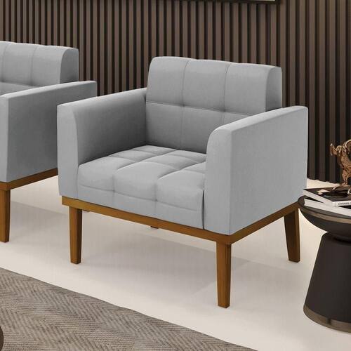 Material da Estrutura: Madeira de Eucalipto ReflorestamentoAssento: Espuma D-23Encosto: Espuma D-23Material dos Pés: Base Fixa em MadeiraRevestimento: SuedePeso Suportado: 120kgConteúdo da Embalagem: 1 PoltronaNecessita de Montagem: Somente dos pés Instruções/Cuidado: Evitar exposição ao sol, para que o produto não sofra alterações na cor do tecido. Não limpar com escovas ou produtos abrasivos.