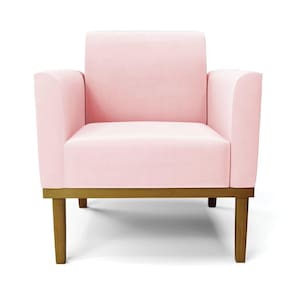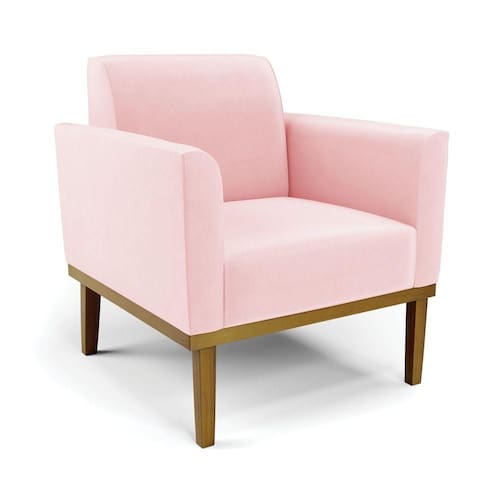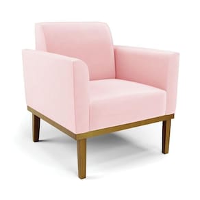 Poltrona Decorativa Pés Fixo Em Madeira Castanho Suede Rosa Bebê - Blush