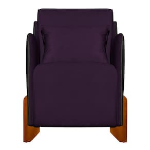 Poltrona Decorativa Pés Madeira Heloisa Veludo Composê em Corino Preto - Estopar - Roxo