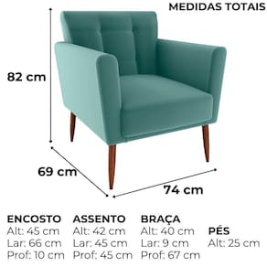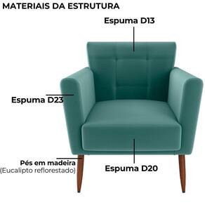 Poltrona Cancun, estilo retrô e toque de sofisticação para seu ambiente. Estrutura em Madeira de Eucalipto (reflorestamento) reforçada com percintas elásticas, estofada com espumas D20 (assento), D23 (braças) e D13 (encosto). Revestida em tecido Veludo Deluxe Sofistc (toque ultra macio, acabamento aveludado e brilho sutil), com detalhes em costura quadriculada no encosto. Possui 4 pés palito também em madeira. Este produto será entregue em 01 volume.