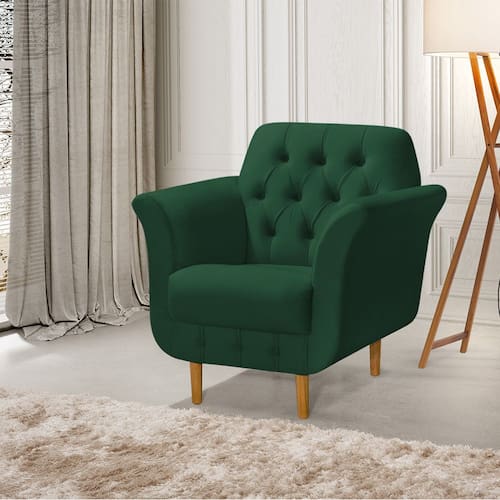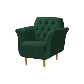 Poltrona Decorativa Pés Palito em Madeira Playa Veludo Verde