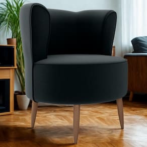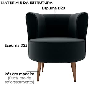 Poltrona Savana, charme orgânico com toque contemporâneo para sua decoração. Com estrutura em Madeira de Eucalipto (reflorestamento) e MDF. Estofada com espumas D23 (assento) e D20 (encosto), revestida em Veludo Inca (Toque extra macio, aveludado e brilhoso), possui formato arredondado com encosto tipo concha e 4 pés palito também em madeira. Este produto será entregue em 01 volume.