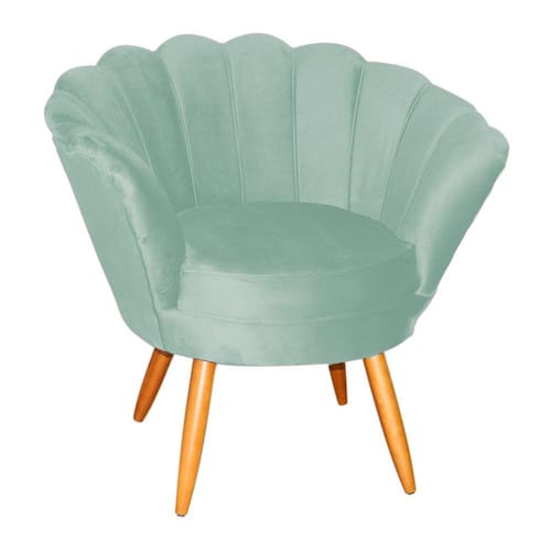 Poltrona Decorativa Pétala Veludo Acqua Pés Madeira Mz Decor - Rosa