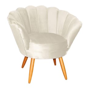 Poltrona Decorativa Pétala Veludo Bege Pés Madeira Mz Decor - Rosa