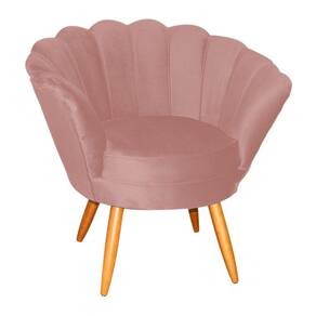 Poltrona Decorativa Pétala Veludo Rosa Pés Madeira Mz Decor