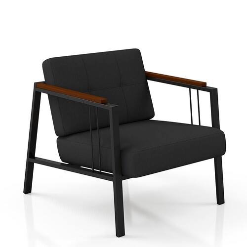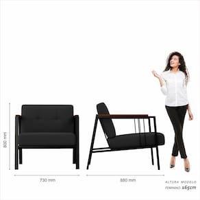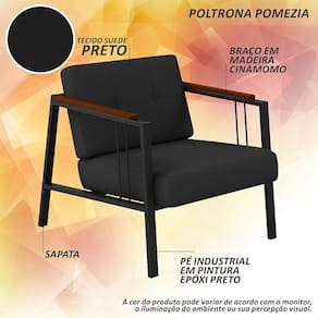 Detalhes Técnicos das Poltronas - Assento e Encosto Tapeçados, Estofados e Fixos - Espuma do Assento e do Encosto: D20 - Tonalidade Estrutura: Preto Fosco -Tonalidade Estofado: Suede Preto - Material: Metalon - Medida Poltrona: A:80CM x L:73CM x P:88CM - Poltrona suporta até 120KG Conteúdo da Embalagem - 01 Poltrona - Manual de Montagem - Acessórios para Montagem