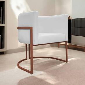 Poltrona Decorativa Recepção Luna Base De Ferro Bronze - Branco Corino