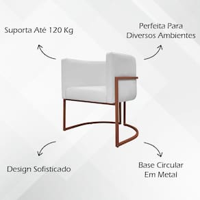 Poltrona Decorativa Recepção Luna Tecido Sintético Cores Base De Ferro Bronze - Branco, Corino
