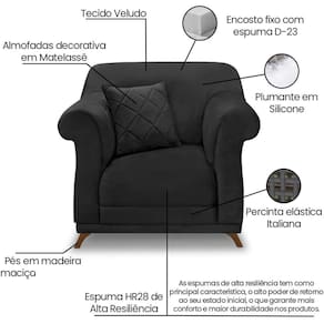Modelo: Poltrona Decorativa Retrô Polo Com Almofada Veludo