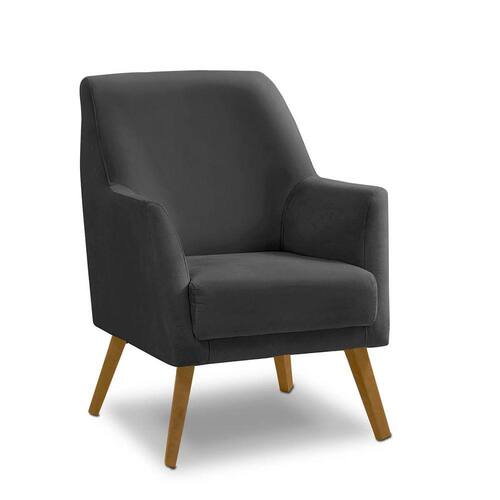 Poltrona Decorativa Retrô Recepção Magali Lisa Veludo Cinza Grafite LANSOFBR