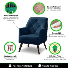 Descubra a elegância e o conforto da poltrona Magali. Ela é móvel que faltava na decoração do seu ambiente domiciliar como a sala de estar e jantar, ou até mesmo em ambientes comerciais, como a sua recepção, sala de espera, escritório ou consultório. Sinta a sensação incrível de se acomodar em um assento macio e aconchegante. Saiba mais sobre o produto: