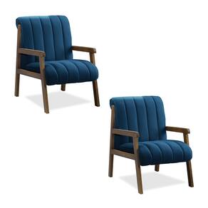 Poltrona Decorativa Sala Base de Madeira kit 2 Daline Bouclê E03 - D`Rossi - Azul Marinho