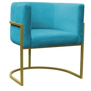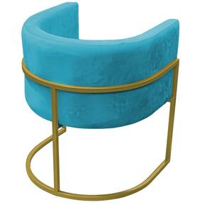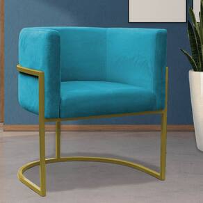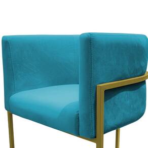 Poltrona Decorativa Sala Carla Base Ferro Dourada Suede - Azul