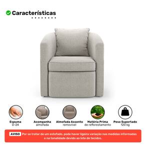 Seu assento é preenchido com espuma D-24, que garante maciez sem perder a firmeza, proporcionando momentos de relaxamento em qualquer ambiente. O revestimento em Bouclê traz um toque sofisticado, com textura agradável e de fácil manutenção.