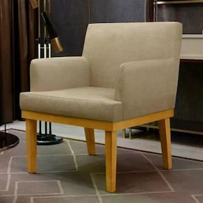 Madeira reflorestada de eucalipto, pinus e MDF. Espuma D-26 (assento) e D-23 (encosto e braços). Corano. Madeira de Eucalipto (pés).Vendido e entregue por MPOZENATO