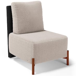 Poltrona Decorativa Sala de Estar Living Pés Madeira Hungria L02 Couríssimo Preto Bouclê Creme - Lyam - Bege Médio