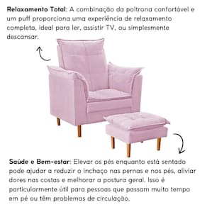 Conforto Personalizado: Uma poltrona com puff proporciona um nível superior de conforto, permitindo que você estenda e eleve as pernas, o que ajuda a reduzir a pressão nas articulações e a melhorar a circulação sanguínea. Isso é especialmente benéfico após um longo dia de trabalho ou durante momentos de relaxamento.