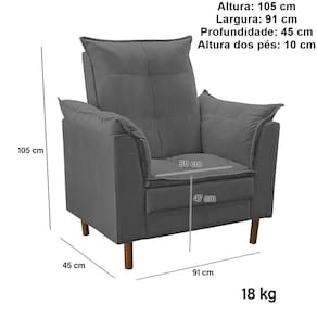 Altura: 105 cm Largura: 91 cm Profundidade: 45 cm Altura dos pés: 10 cm Altura do chão até o assento: 47 cm Largura encosto: 60 cm Altura encosto: 66 cm Largura assento: 50 cm Altura assento: 47 cm Peso: 23 Kg Peso Suportado: 110 Kg
