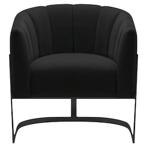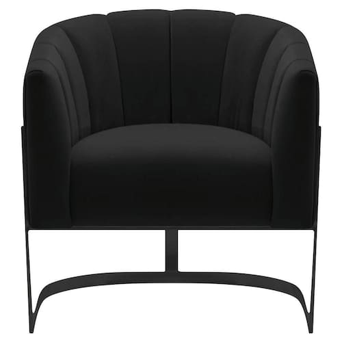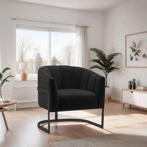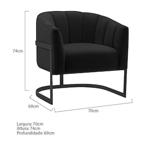Poltrona Decorativa Sala De Estar Recepção Mavie Base De Ferro Preto Suede Cor Preto