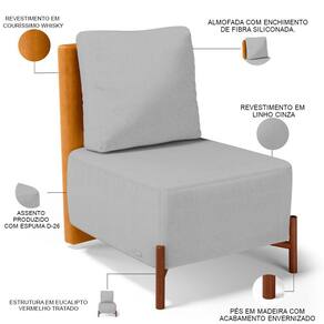 Revestimento do encosto em Couríssimo na cor Whisky do assento em Linho na cor Cinza, de alta qualidade.