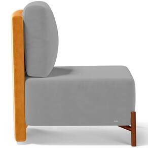 Poltrona Decorativa Sala Estar Living Pés Madeira Hungria L02 Couríssimo Whisky Suede Cinza - Lyam