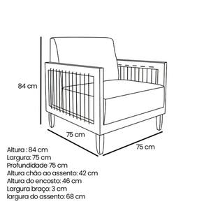 Medidas do Produto:Medidas Total do Produto (A x L x P): 84 x 75 x 75 cm Altura do chão ao Assento: 42 cmAltura do Encosto: 46 cm Largura da Braça: 3 cm Largura do Assento: 68 cm Profundidade do Assento: 54 cm Peso do Produto: 40 kg Peso Suportado: 120 kg