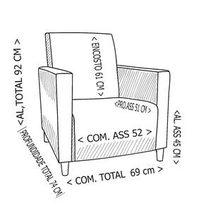 Medidas Comprimento Total Frente= 69 cm Comprimento Assento = 52 cm Profundidade Total = 74 cm Profundidade Assento 51 cm Altura Total = 92 cm Altura Encosto = 61 cm Altura Assento = 43 cm
