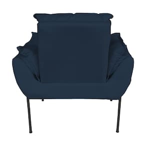 Poltrona Decorativa Suede Azul Marinho Base Preta - Vallisa Decor