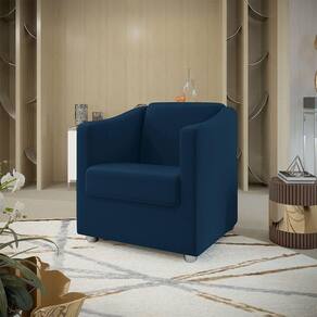 Poltrona Decorativa Tilla Suede Pés Cromado Azul Marinho
