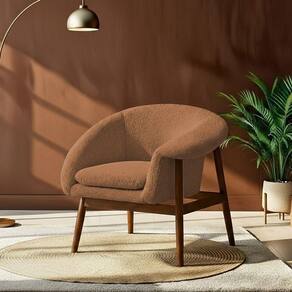 Poltrona Decorativa Yumi Base Madeira Braço Esquerdo Bouclé Terracota - Nexta Casa