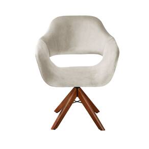 Poltrona Decorativa Zara Pé Giratório de Madeira Sala Recepção Bege Claro