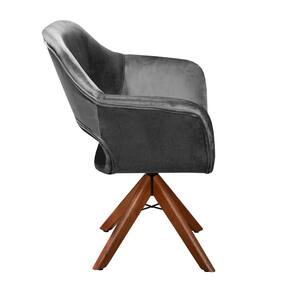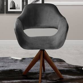 Poltrona Decorativa Zara Pé Giratório de Madeira Sala Recepção Cinza grafite