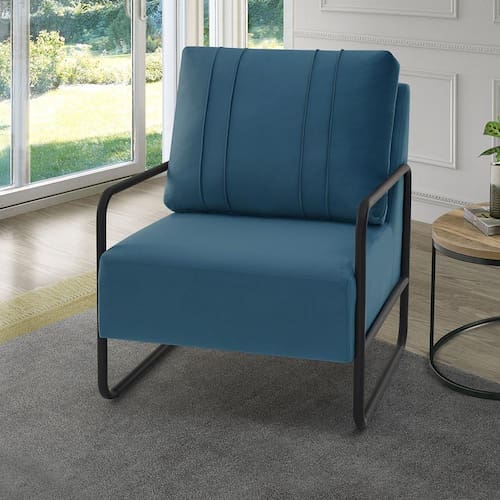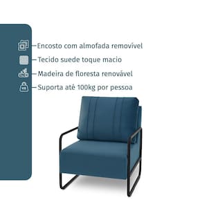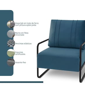 Poltrona Decorativa Zoe Braço em Ferro 70 cm Estofama - Azul Petróleo