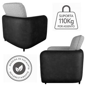 Poltrona Zuquire design moderno e conforto sob medida para qualquer ambiente. Estrutura em Madeira Eucalipto de reflorestamento com cintas elásticas e molas ensacadas no assento. Estofada com espumas D23 (braças e assento) e D13 (encosto). Revestida em dois tecidos: Vancouver Linen (linho misto) na parte frontal e Frankfurt Montana (corino sintético) nas laterais e traseira. Conta com 4 pés também em madeira. Este produto será entregue em 01 volume.
