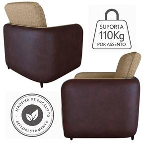 Poltrona Zuquire design moderno e conforto sob medida para qualquer ambiente. Estrutura em Madeira Eucalipto de reflorestamento com cintas elásticas e molas ensacadas no assento. Estofada com espumas D23 (braças e assento) e D13 (encosto). Revestida em dois tecidos: Vancouver Linen (linho misto) na parte frontal e Frankfurt Montana (corino sintético) nas laterais e traseira. Conta com 4 pés também em madeira. Este produto será entregue em 01 volume.