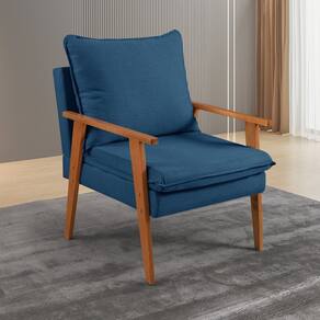 A Poltrona Decorativa Efatá possui design moderno, sofisticado e acolhedor pois possui no assento pillow de 8 cm com espuma D28 Soft. Além disso em seu assento persintas elásticas de excelente qualidade que garantem conforto e resistência. A almofada do encosto são preenchidas com 100% de fibra siliconada. A estrutura é fabricada em madeira de eucalipto, seca e imunizada e os pés em madeira maciça com acabamento em verniz fosco. A Poltrona Efatá é sinônimo de conforto na sala de estar da sua casa! Acompanha Almofadas extras: Não Acompanha Puff: Não Almofada do assento: Fixa Almofada do encosto: Removível Altura do assento até o chão: 45 cm Altura do Encosto: 50 cm Altura dos Pés: 60 cm Ambiente Principal: Sala de Estar codigo_ean: 7900288227270 Complexidade da Montagem: Baixa: pode ser montado por uma pessoa sozinha Cor: Azul Cor do Produto: Azul Design Assinado: Não Enchimento do Assento: Espuma D-28 Enchimento do Braço: Não Possui Encosto para a Cabeça: Não Estampado: Não Extensível: Não Firmeza do Assento: Médio Informações Complementares: Pillow de 8 cm com Espuma D28 Soft no assento Itens Inclusos: 1 Poltrona e Kit Ferragem Linha ou Coleção: Efatá Manual de Especificação Técnica: https://product-hub-prd.madeiramadeira.com.br/154259099/documents/a4c770b2-b260-4a7e-a9ce-4239c1054a2b3197947204117576171165045.pdf Manual de Montagem e Instalação: https://product-hub-prd.madeiramadeira.com.br/154259099/documents/54ab5669-96b6-4c67-8b79-fbde813c9aba3197946204117576171134213.pdf Marca: Vicam Estofados Material do Braço: Madeira Maciça Material dos Pés: Madeira Maciça Modelo de Poltrona: Fixo Necessita Montagem: Sim Origem do Produto: Nacional Peso: 14,5 kg Possui Percintas Elásticas: Sim Possui Pés: 02 Possui Rodízio: Não Recomendações de Uso, Manutenção e Limpeza: Uitlizarm pano levemente umidecido Sistema de Montagem: Parafusos e Chave Allen Suporta Até (kg): 100 kg Tecido Predominante: Linho Tipo de Assento: Fixo Tipo de Encosto: Fixo Tipo de Espuma do Assento: Soft Tipo de Poltrona: Decorativa Marca: Não Informado