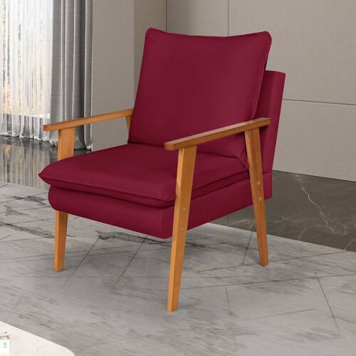 A Poltrona Decorativa Efatá possui design moderno, sofisticado e acolhedor pois possui no assento pillow de 8 cm com espuma D28 Soft. Além disso em seu assento persintas elásticas de excelente qualidade que garantem conforto e resistência. A almofada do encosto são preenchidas com 100% de fibra siliconada. A estrutura é fabricada em madeira de eucalipto, seca e imunizada e os pés em madeira maciça com acabamento em verniz fosco. A Poltrona Efatá é sinônimo de conforto na sala de estar da sua casa! Acompanha Almofadas extras: Não Acompanha Puff: Não Almofada do assento: Fixa Almofada do encosto: Removível Altura do assento até o chão: 45 cm Altura do Encosto: 50 cm Altura dos Pés: 60 cm Ambiente Principal: Sala de Estar codigo_ean: 7900288227027 Complexidade da Montagem: Baixa: pode ser montado por uma pessoa sozinha Cor: Bordô Cor do Produto: Bordô Design Assinado: Não Enchimento do Assento: Espuma D-28 Enchimento do Braço: Não Possui Encosto para a Cabeça: Não Estampado: Não Extensível: Não Firmeza do Assento: Médio Informações Complementares: Pillow de 8 cm com Espuma D28 Soft no assento Itens Inclusos: 1 Poltrona e Kit Ferragem Linha ou Coleção: Efatá Manual de Especificação Técnica: https://product-hub-prd.madeiramadeira.com.br/521045235/documents/fcfc1806-16b4-4d19-a9e6-e01fbf6bed5c3197443204117576118875023.pdf Manual de Montagem e Instalação: https://product-hub-prd.madeiramadeira.com.br/521045235/documents/edaf8386-01a4-4c2f-91c5-01d39c28317a3197441204117576118839485.pdf Marca: Vicam Estofados Material do Braço: Madeira Maciça Material dos Pés: Madeira Maciça Modelo de Poltrona: Fixo Necessita Montagem: Sim Origem do Produto: Nacional Peso: 14,5 kg Possui Percintas Elásticas: Sim Possui Pés: 02 Possui Rodízio: Não Recomendações de Uso, Manutenção e Limpeza: Uitlizarm pano levemente umidecido Sistema de Montagem: Parafusos e Chave Allen Suporta Até (kg): 100 kg Tecido Predominante: Veludo Tipo de Assento: Fixo Tipo de Encosto: Fixo Tipo de Espuma do Assento: Soft Tipo de Poltrona: Decorativa Marca: Não Informado