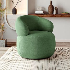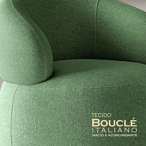 AS IMAGENS SÃO MERAMENTE ILUSTRATIVAS E PODEM SOFRER VARIAÇÕES DE COR E PEQUENOS DETALHES DE ACORDO COM O SEU MONITOR, ILUMINAÇÃO DO AMBIENTE E ATÉ MESMO A SUA PERCEPÇÃO VISUAL.Poltrona Design OrgÃnico Moderno e Sofisticado Eloah Base GiratÃria Bouclà Italiano Verde Selva