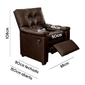 CARACTERISTICAS DO PRODUTO: - Estofamento: Assento, braços e encosto em fibra siliconada; - Revestimento: Couro Facto, sintético de qualidade;