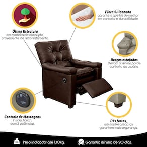 Descubra o conforto supremo da poltrona do papai reclinável Imperador com um toque de luxo e relaxamento. Nossa poltrona é o seu refúgio perfeito após um longo dia de trabalho ou momentos de descontração merecidos. Sinta a sensação única de se acomodar em um assento macio e aconchegante apoiado por um massageador integrado que proporciona uma massagem suave e revigorante. Além disso o enchimento em fibra siliconada garante uma experiência de descanso única oferecendo suporte ideal para o corpo. Esta poltrona Imperador é o sinônimo de comodidade qualidade e design sofisticado. Saiba mais sobre o produto: