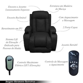 Poltrona Do Papai Reclinável Com Massagem E Elevação Miami Couro Sintético Preto Encantum