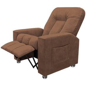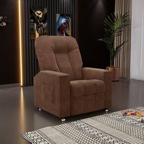 Dimensões do Produto:Largura: 85cmAltura: 110cmProfundidade: 98cmProfundidade Aberto: 148cmAltura do Assento: 45cmAltura do Encosto: 70cmProfundidade do Assento: 50cmLargura do Assento: 52cmLargura dos Braços: Canto 15cm Características do Produto:Material da Estrutura: Madeira de Reflorestamento de EucaliptoEncosto: Fibra Siliconada e Percinta Elástica Assento: Espuma D-26 Soft e Percinta ElásticaBraço: Enchimento em Espuma D-20Sistemas: Reclinável com Mecanismo Independente de 02 Estágios e 03 Posições. Posição 01 (Sentado), Posição 02 (Leitura) e Posição 03 (Descanso)Sistema de Abertura: Com as Mãos nas Braças, Flexionar o Corpo para Trás e Mãos para Frente.Detalhes: Revisteiro Lateral nas BraçasMaterial dos Pés: Madeira Revestidos em Alumínio CromadosRevestimento: VeludoQuantidade de Pés: 4Tipo de Pés: FixoPeso Suportado: 110 Kg por Assento;Conteúdo da Embalagem: 1 Poltrona Necessita de Montagem: NãoInstruções/Cuidado: Utilizar um pano levemente umedecido com água, seguido de pano seco. Evitar exposição ao sol, para que o produto não sofra alterações na cor. Não limpar com escovas ou produtos abrasivos.
