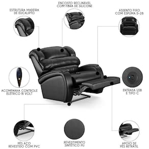 Com um design que alia modernidade e elegância, a Poltrona Reclinável é a escolha perfeita para aqueles que não abrem mão do conforto supremo. Seja mergulhando nas páginas de um bom livro ou se deliciando com seus filmes e séries prediletos, esta Poltrona Do Papai promete ser o seu refúgio particular. A funcionalidade do encosto reclinável, o apoio para os pés e o controle elétrico bi-volt são pensados para proporcionar uma experiência imersiva sem igual. Ah! E ela ainda conta com entrada USB e tipo C ideal para carregar seus eletrônicos enquanto descansa. E não é só sobre conforto, mas também sobre durabilidade e estilo, como a madeira maciça de eucalipto e o revestimento de alta qualidade. As dimensões generosas garantem que você tenha espaço de sobra para relaxar, enquanto a capacidade de suportar até 110kg assegura que é uma peça robusta e . Não é apenas uma poltrona, é um upgrade na sua qualidade de vida, trazendo o glamour do cinema diretamente para o seu lar.