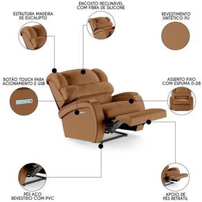 Hora de deixar a sua Sala De Estar mais moderna e transformar em um espaço de entretenimento de última geração com a Poltrona do Papai Reclinável Kalie Power Touch FH9 PU Caramelo, da Mpozenato!