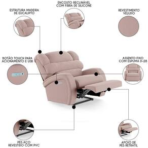 Hora de deixar a sua Sala De Estar mais moderna e transformar em um espaço de entretenimento de última geração com a Poltrona do Papai Reclinável Kalie Power Touch FH9 Veludo Rosê, da Mpozenato!