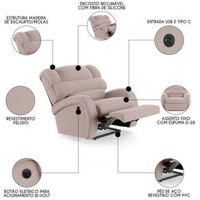 Conheça a Poltrona do Papai Reclinável Kalie Power Elétrica USB FH9 Veludo Rosê, da Mpozenato. Ideal para transformar a sua Sala De Estar em um espaço de entretenimento de última geração!