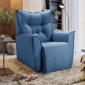 Poltrona Do Papai Reclinável King - Linho Azul Linho A poltrona do papai King e uma peca de mobiliario luxuosa e confortavel, com estrutura robusta e estofamento de alta qualidade. Sua funcao de reclinacao permite ajustar o encosto e o apoio para os pes. O design elegante combina com diversos estilos de decoracao. A GARANTIA E DE FABRICA