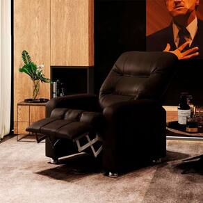 Poltrona Do Papai Reclinável Maldivas Corano Marrom Star Confort Marrom Como e bom ter um lugar para descansar depois de um longo dia no trabalho, e melhor ainda se este lugar for confortavel e relaxante. A poltrona Maldivas reclinavel e a melhor opcao para conseguir seus momentos de descanso e tonar seu momento de lazer ainda mais agradavel, e um movel sofisticado e vai valorizar a decoracao do seu ambiente. Perfeito para aquele momento de leitura ou assistir um filme na televisao, alem disso possui design moderno, onde a parte reclinavel remete a formas geometricas. Confira os detalhes desta poltrona maravilhosa que vai te encantar! Caracteristicas do Produto: Material da Estrutura: Madeira Macica Tratada Espuma: D 20 Peso Suportado: Ate 120 Quilos Possui Pes: Sim 4 Material dos Pes: Aluminio Poltrona e reclinavel Material do Assento: Espuma D 20 com percintas elasticas. Material do Encosto: 100 porcento Fibra Siliconada Tipo de Tecido: Corano